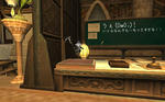 あまりの空しさに、黒板に落書きして、貰った人形を置いてみた…。