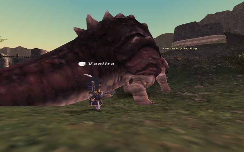石追加ついでに、相方が赤に着替えてきて、ついでに叩くトンベリも種類を変えてジョブ黒の赤い色のトンベリに変更しました。紛らわしい(((゜д゜;)))けど、調べてみたら…「攻撃回避力が低い。」と表示された!これだ!と意気込んでやろうとしたら、バニラさん、NMに見破られて、必死に逃げ惑う…⇒10分経過orz