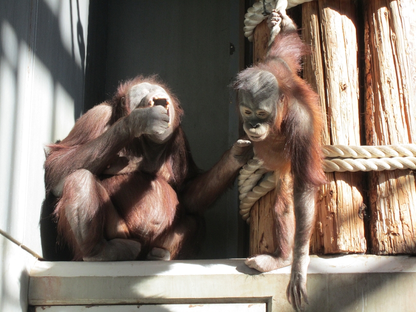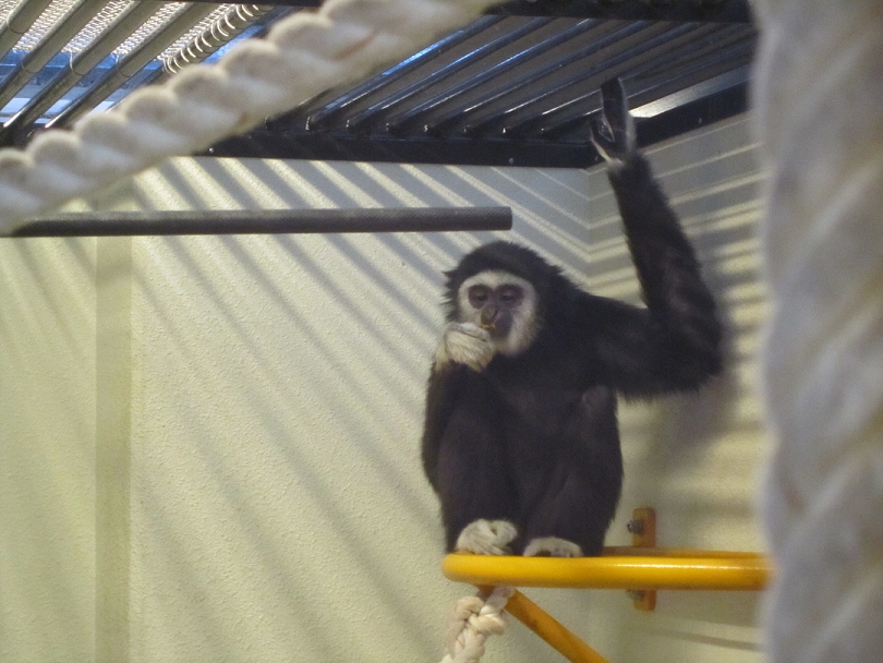 オ ランウータンとか、チンパンジーとか、猿とかってかわいい!って言う人いるぢゃないですか?うち、いままで、そういうの一切わかんなかったんですけどね、 この手長猿かな?こいつに胸打たれましたよ。なんかかわいらしくないですか?ちまちまご飯食べてたり、壁際でひきこもってたり、その視線がなんともいえな いかわいらしさでしたよ(*´ω`*)壁際でひきこもってるやつがかわいすぎました!