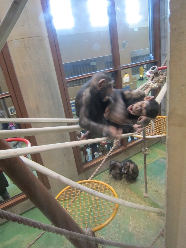 チンパンジーは、志村動物園のパンくんのイメージがとても強いですけど、ここのと見比べるとパン君のかわいさがよぉくわかります。なんか…毛が薄すぎて、かわいらしさが足りないんですよねー(´-`;)うちやっぱ、手長猿がいいですわ。