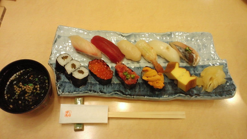 でも!!そこは頭使ってます、1500円コースに食べたい物がなかったのを確認した上での1000コースの注文です。で、単品の注文で1巻500円のウニを注文(☆ω☆)♪これで、食べたい物も食べれますしねぇーウニ食べたかったんですよね、北海道で是非とも。小樽のときに、ウニ丼食べれるかなぁーと思ってたけど、結局食べてないんで、ここで!!と言わんばかりに注文('ω')