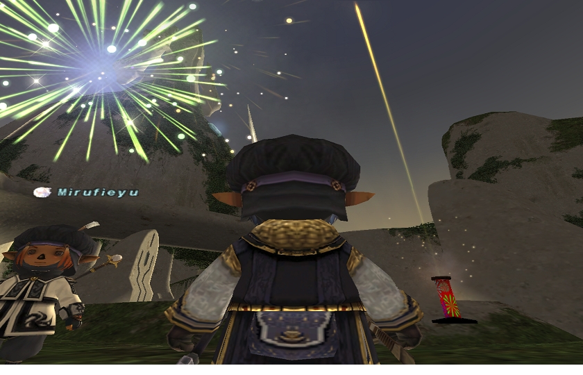 うちが、辞めたときに、最後に選んだログアウトの場所。だから、墓に眠ってるのは、ユーロもだろうと、花火師Lv80として、無鉄砲を連射しておいた。罰は、当たらないだろう!自分のでもある墓に、花火ぶっぱなしたって!(゜∀゜)
