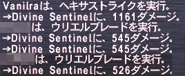 仕切りなおし前に、しーちょっとから手渡されたイカロスウィング…お?臼さん、しーちょっとに、前衛として認められた!!か、どうかは別として、2連続大火力ヘキサの出番です☆TPが溜まったら、ドカンと1発752ダメージ!続いて、しーちょっとから貰ったイカロスウィングにガブリとかぶりついて(`皿´)ガジガジ!…917ダメージ!