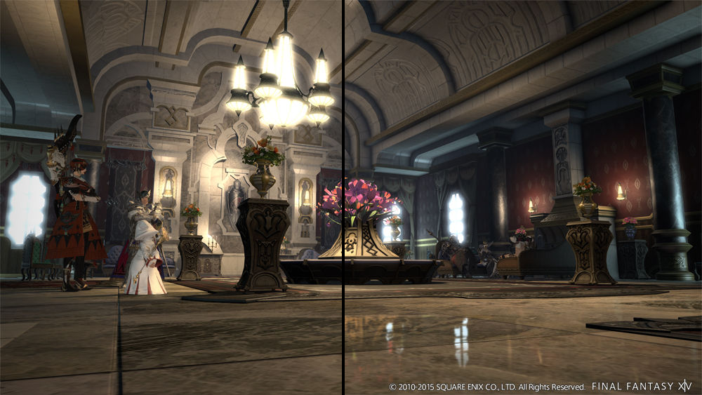 現在のWindows版は、FF11より一世代後の描写技術を採用しています。これが、6/23日の拡張ディスク発売からWindowsには、より最新の描写技術が適用されます。上記比較で、PS4とPCの描写がほぼ同一(光の描写でPCが劣って見える?)なので、この先は、拡張ディスク後のPS4とPCの画質の比較と脳内変換してください。