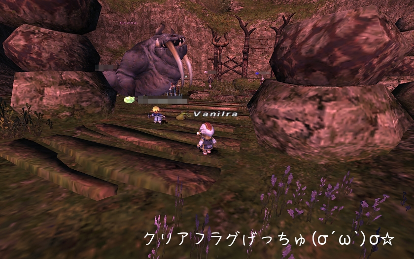 雑魚が沸いたり、絡んだら、一旦NMからタゲを剥がして、2人で雑魚処理。それを繰り返していって、倒したのですが、このタゲ切りが原因かはわからないけど、トレハンもあがらずドロップしませんでした(´・ω・`)残念…。