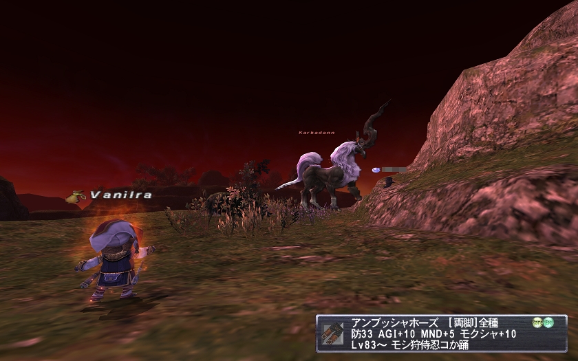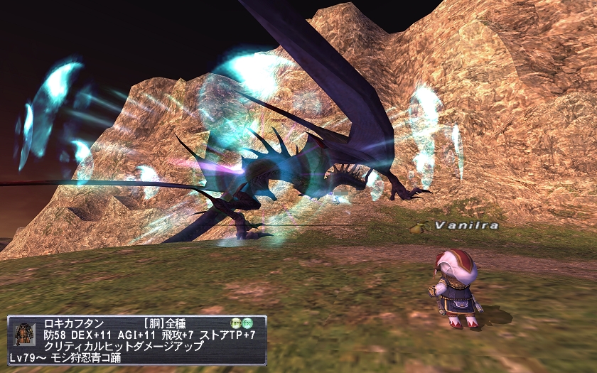 その後も、トリガー集めなどで、2回に1回ぐらいのペースで弱点を突けずにいたのですが…なぜか百発百中。弱点なしで、トリガーも集めたりとか超がつくぐらいに運気はよかったです!!そして、3回戦目のKarkadannはというと…両手棍で、うちのスキルが足りず、WSをスカしたりうまく弱点のタイミングにWS出せなかったりで残りHP@2mm程度のところで…ヘヴィスイングで、青!!この感じ…出たも同然だな…(´3`)y-~