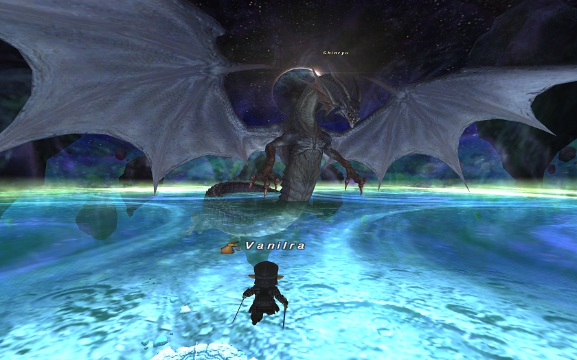 そう。このBF、5人で突入したんだけど…うちが、元々は脳筋の臼だというのを完璧に知ってるフレの要請で、バニンジャ盾となったわけですよ。いや、このね、上の写真の…神竜に突撃する瞬間、なんか自分で…自分のことかっこいい!とか思っちゃいましたよ(´m`*)まるで、ソロ突撃してるぽく見えるけど、決してそんなことはありませんwww