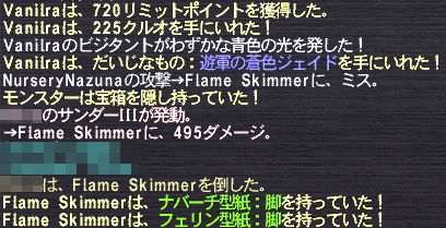 こうして、無事…バニラは、だいじなものを手に入れました、とさ。その後、数回ウサギをこなして終了。先輩は、脚型紙を集め終わり、