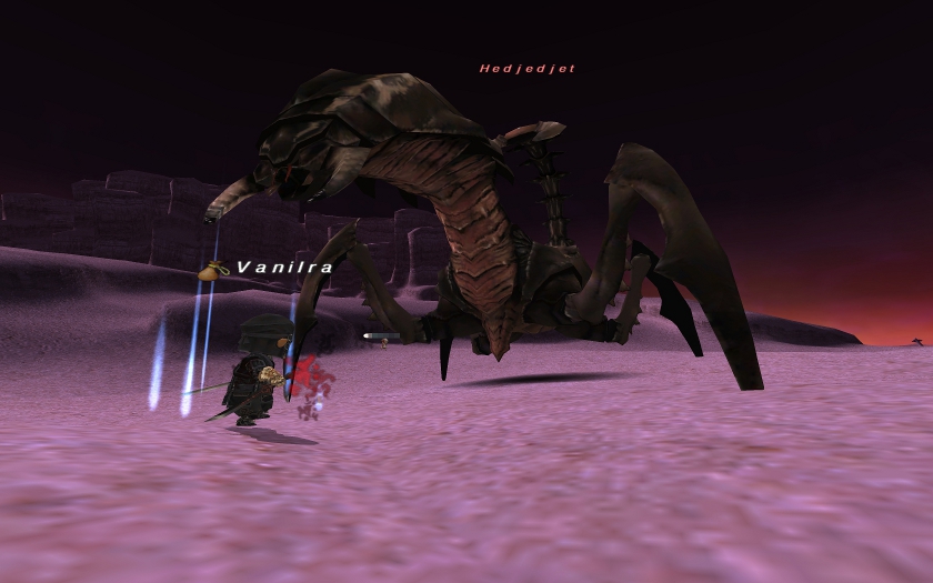 帰宅際に、近くにいたデカサソリNMも挑戦してきましたが、これも特に問題ないかと思います。瀕死技のログ見たらHP比例だったので、身替りの術で避けることもできますので、問題ナッシングに近いです。
