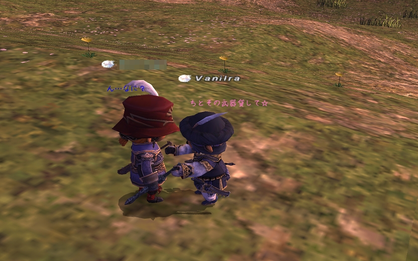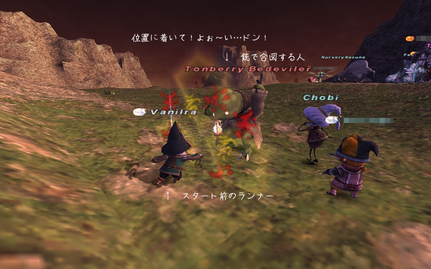 石追加ついでに、相方が赤に着替えてきて、ついでに叩くトンベリも種類を変えてジョブ黒の赤い色のトンベリに変更しました。紛らわしい(((゜д゜;)))けど、調べてみたら…「攻撃回避力が低い。」と表示された!これだ!と意気込んでやろうとしたら、バニラさん、NMに見破られて、必死に逃げ惑う…⇒10分経過orz