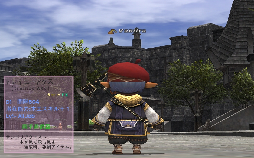 ある意味、うちてきには、イベント系見た目重視アイテムと同じ扱いで、スキルどうこうぢゃなくて、ちょこちょこ集めてます★今回は、木工スキルがあがる両手斧を狙ってみます(゜∀゜)そう、先日お金ないのに、間違えて1D購入してしまったあのマサカリさんは、これに使うつもりで買ったわけなんだけど…。