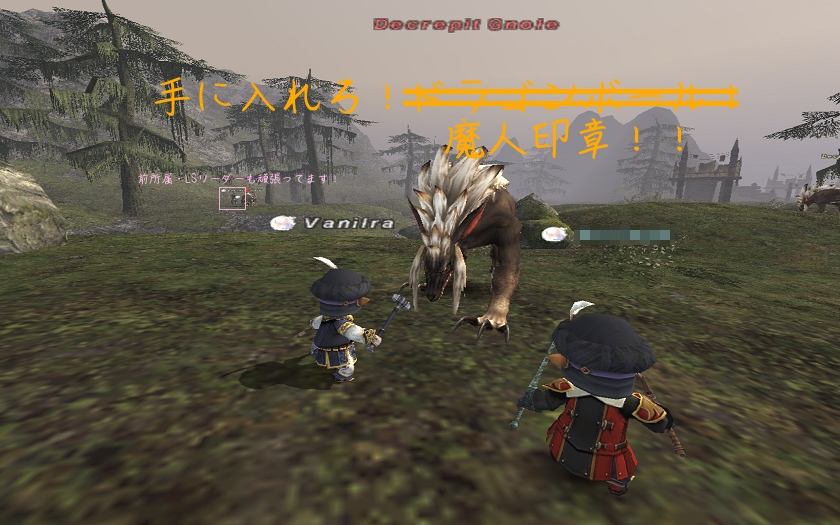 で、結局、あれこれありまして、眠気がきたフレと別れて…シニスギ、イミワカンネ。状態で、ふらふらとミザレオの鳥を1匹…なんかいいとこないのかなぁ~と相方と喋りながら、目的変更しつつ出たらラッキー程度で相方メイジャンのウィヴルをやろうてことで、過去ジャグへ…。