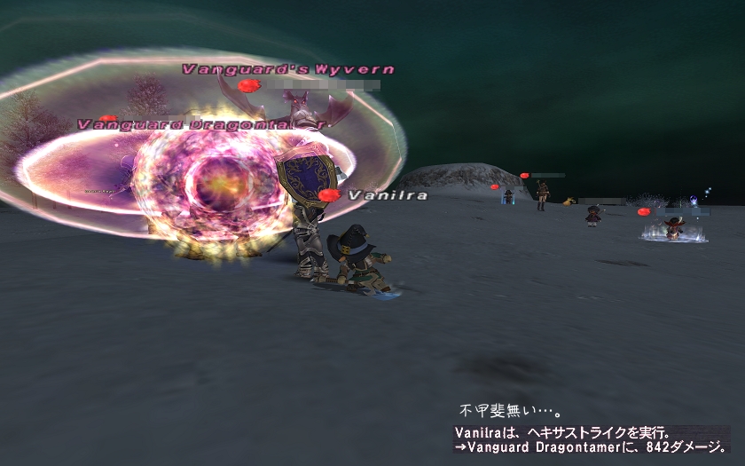 最近、裏参加への人数の激減のせいか…白のMPが本当にしんどくなってきました。というか、全然持たないので、こうして座り込むしかないというか…な現状です。そして、その奥でサポ赤が悠々と立ちっぱなしだったり…。