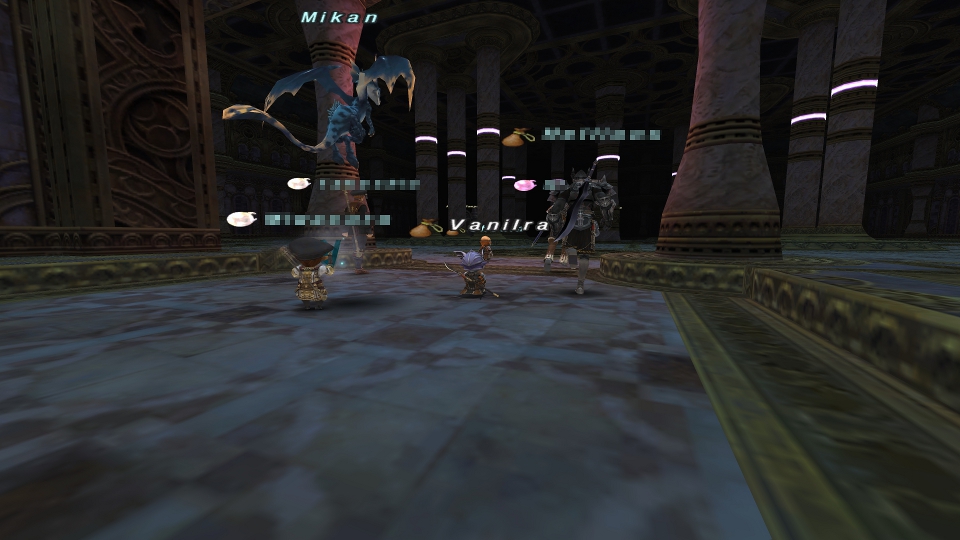 という感じで、基本前半はリジェネ・ファラ・ヘイストだけでやりくり。特に前衛は、星眼・心眼に頼るから敵は2匹以上は集めないように注意して貰ったり工夫しました。竜騎士はヒルブレがあるので、特に変更なしでした。