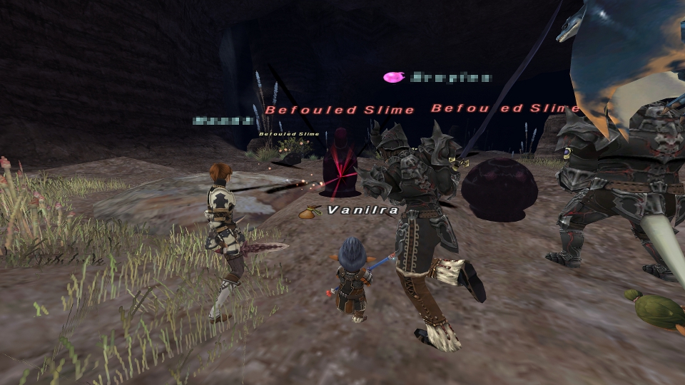竜/白なら持久力あるから、ソロで雑魚処理を坦々と繰り返せるだろうと踏んで、こういう役回りです。最後のほう、もっさもっさ沸いてきて、大変だったけど、カット装備にして一気に釣って耐えようとしたら、ケアル飛んできて、後衛に全部ぶっ飛んでって焦って追いかけてたら…終わったwww
