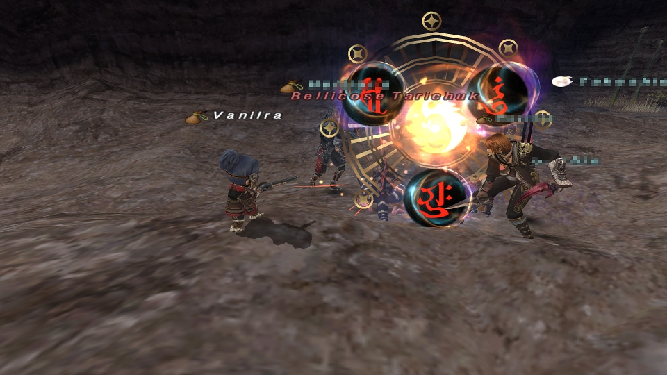 盾は、忍者が担当。命中がスシ食べても不安だったので、サポートに踊り子。シで、トレハン。この3人の回復とかを白魔が担当して、削りはアムネがあるので、遠隔組みで行う。今回は、侍と狩で削っていく感じにしました。