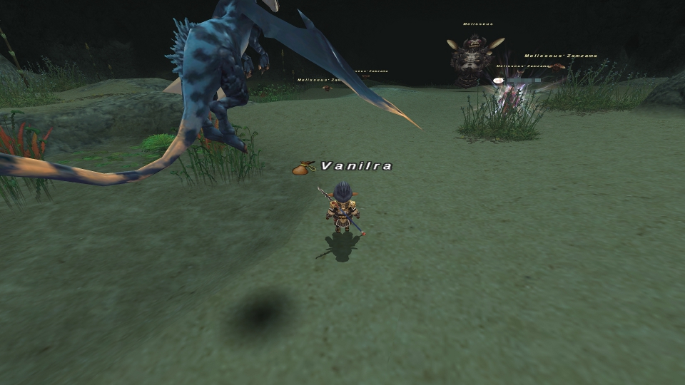 竜/白なら持久力あるから、ソロで雑魚処理を坦々と繰り返せるだろうと踏んで、こういう役回りです。最後のほう、もっさもっさ沸いてきて、大変だったけど、カット装備にして一気に釣って耐えようとしたら、ケアル飛んできて、後衛に全部ぶっ飛んでって焦って追いかけてたら…終わったwww