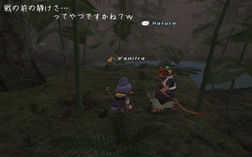 予想通り、タゲをヘキサで奪って、不意打ちしたり…だまし入れたりで、タゲをまわしていく素晴らしさでNMを倒したわけですが…今回は、おーくんが蝉まわせない!と言った相手に、うちが挑むのか…と思うと不安で不安で…でも、きっとだいじょぶ。もうハルとのコンビネーションにも絶対的な自信がある!!