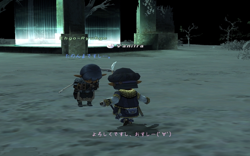 ハルオは、ほとんど付いて歩いてくるだけなので、↑の写真の会話のまんまですし、おすしー☆雑魚は、うちの攻撃だけ沈む⇒ボスはTP貯めてヘキサで1発。ということですな(*´∀`*)ダメージ2300ぐらいでますですよ、はい☆
