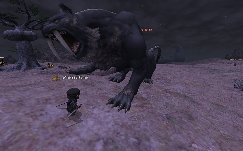 "Jyeshtha"を、まず、2人でやってみたのですが…いきなり別のほうのNMが沸いて、軽々と死亡。こりゃ、さすがにまずい…(´д`;)と感じて、フレのヘカちゃんを召喚!3人で、さくさくとサソリVNMを倒して…