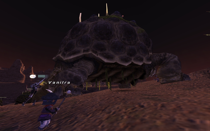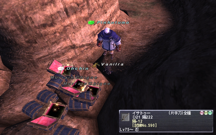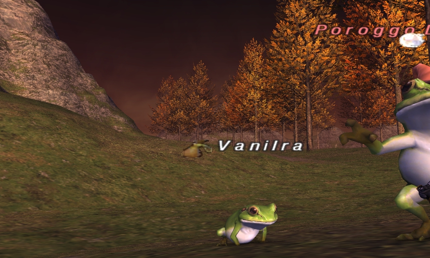 で、夜は、先輩の腰装備を取るために、ゴカイと釣り道具を買って、ラテーヌで釣り。先日、TBと一緒にやって取得したヌスクサッシュ取りの準備です。またのんびり1時間ほど釣りしながら、Narnさんを倒して、だいじなものを確保してから…ちょいと遊び心で、カエルになってみたり…