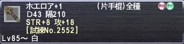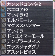 ⑨ブラスジャグダナ:練成発表後、仮面先輩と色々していた頃にふと思い立って作り上げた棍棒。WS時のみだが、DA+4%という協力なステータス付きとなって本領発揮、2本携帯しており、夢のDA率8%上昇を可能にした。