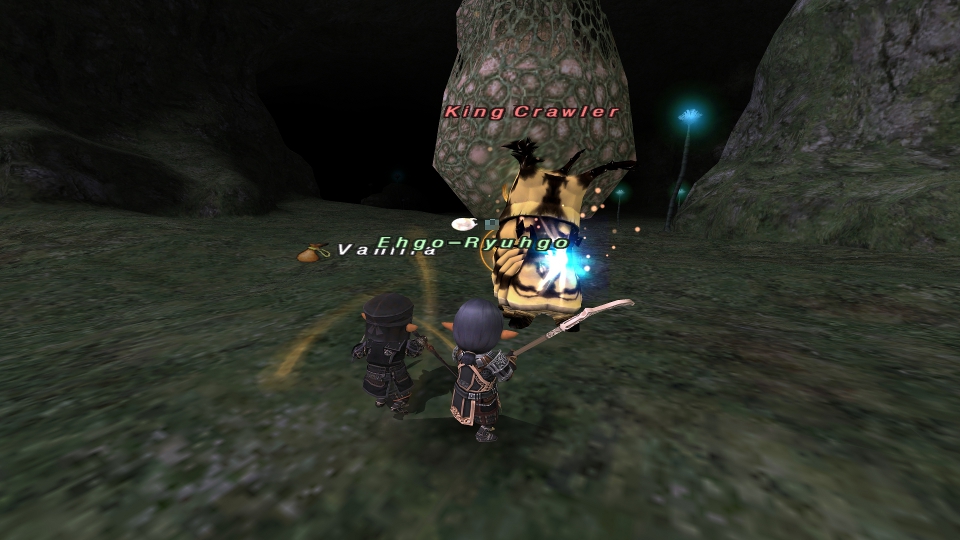 仮にも両手武器なのに、フェローのハルオちゃんの1撃は…うちの狩人の短剣1発以下という有様。というか、クリティカルすると、短剣1発に並ぶぐらいの威力を…驚く事に、狩人でベロシティして強スロウ状態よりも遅い間隔で振り回すという。