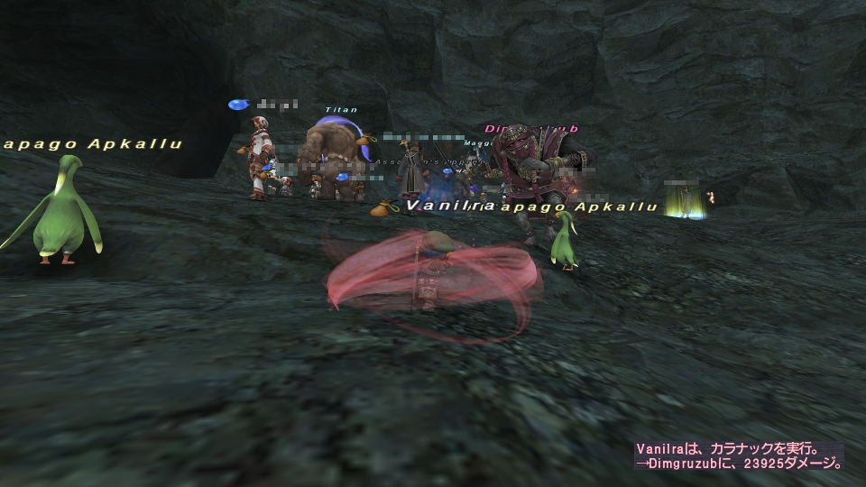 カダーバのカエルBrekekekexは、黒魔が少なくて、ちょい苦戦。出来れば、スタンとか色々欲しいところですが…期待できないので、魅了されたのを範囲寝かせしたりしながら、1人が物理無効でタゲしてる間に、カラナックとWFでドンドン削りながら…みたいなやり方でごり押ししてクリア。