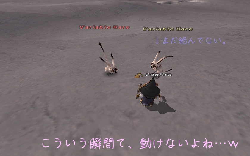 ストスキMAX状態からHP残り200ぐらいまでごっそり削られて、さらにノックバック…詠唱中断されたりで、ケアルがうまくいかず、持ち直してきたところに、再びこのTP技が来て、同じようにバタバタしていたら、通常攻撃で沈められてしまいました…。この事態に、ハルニャンも焦ったのか、そのまま敢え無く、撃沈…orz