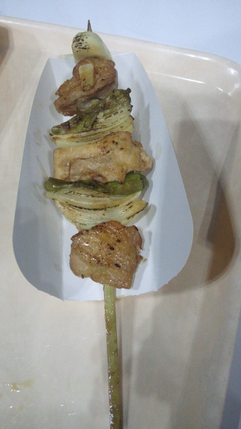 フレが注文した、ミスラ風山の幸串焼き(¥800w)を、撮影させてもらいました。鳥肉と鴨肉が刺さってるらしいです。見た目は、まさにヴァナディールのままでしたが…この先端についてるのは…