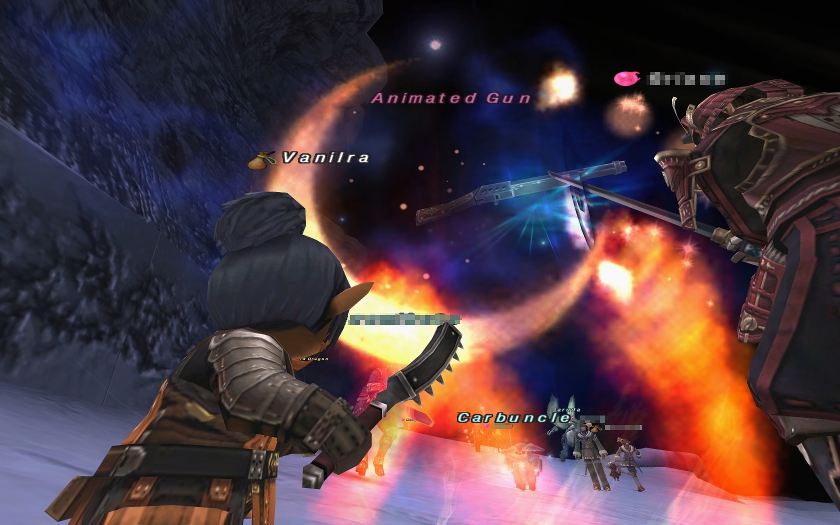 ですが、初めての天神ですし、吸収もあるので、焦ってタイミングが掴めないのか、削りが遅い('A`;)アースのダメージ幅は、2000~6000程の予想通りなダメージでした。こんとき、持ち替えるよう指示だせば良かったんだけど、ギリギリいけるかなぁー?ってところだったので、言わずにいたら、1割残して、天神切れた(´ー`;)