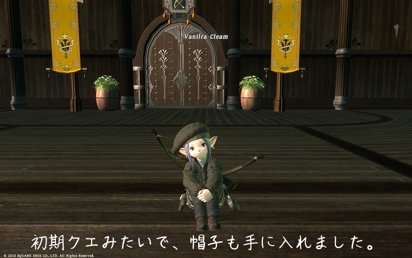 1個目のを終えたら、小銭と帽子が手に入りました。で、冒険者ギルドという謎の場所に戻って、調子にのって、受けれる全てのギルドグリーヴを受けて、再びエーテライトのところへ。ふふ…最初のクエ、いきなり放棄!!さすが、我が道を行くバニラさん!!素敵です!