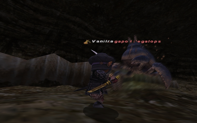 カニNMのところまで、テクテク歩いて、さくっと沸かせて緊張しつつも戦闘開始!…あれ?くそ弱い('ω'*)!!これは、勝ったも同然。蝉すら張らないでも、うちのスキルで素避けできました。