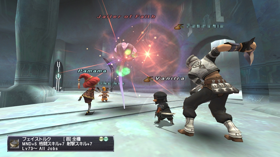 問題は、この5塔のどこかって事で、2手に沸かれて???を探すのですが…15分だか、30分の間隔で、???が別の塔へ移動してしまうので、急いで探して、見つけたら急いで合流して、急いで沸かせて…1回目は、ヒュームの塔にて発見。沸かせてみるも、フェイストルクはドロップせず。