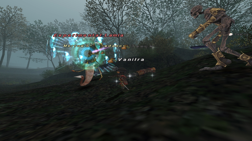 睡眠技を食らって、古代2を詠唱されて…起きたところで急いで蝉2を自慢のファストキャスト装備で唱えたけど、間に合わず直撃。バ系も切れてたのか、そのまま一瞬でアボーン(;´д⊂)おーくんも、そのあと古代2食らって一瞬でアボーン(;´д⊂)